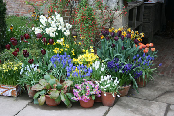 There are many enchanting things about Great Dixter, not least it's impressive old, old house combined with Lutyens hard landscaping and bold yew topiary which act as the prefect backdrop for the garden within. This collection of pots is a great example of how you can take inspiration from expansive, grand gardens and implement the details at home. This brightly coloured selection of plants gets changed as the plants fade and relpaced with something new. We don't all have the space to store plants which for 300 days of the year are not having a moment, but with careful planting choices, a group of pots like this could be perfect for even the smallest garden. By grouping the pots together it not only creates a stronger impact than scattering them around, but helps them to create their own little huddle of protection from winter frosts.